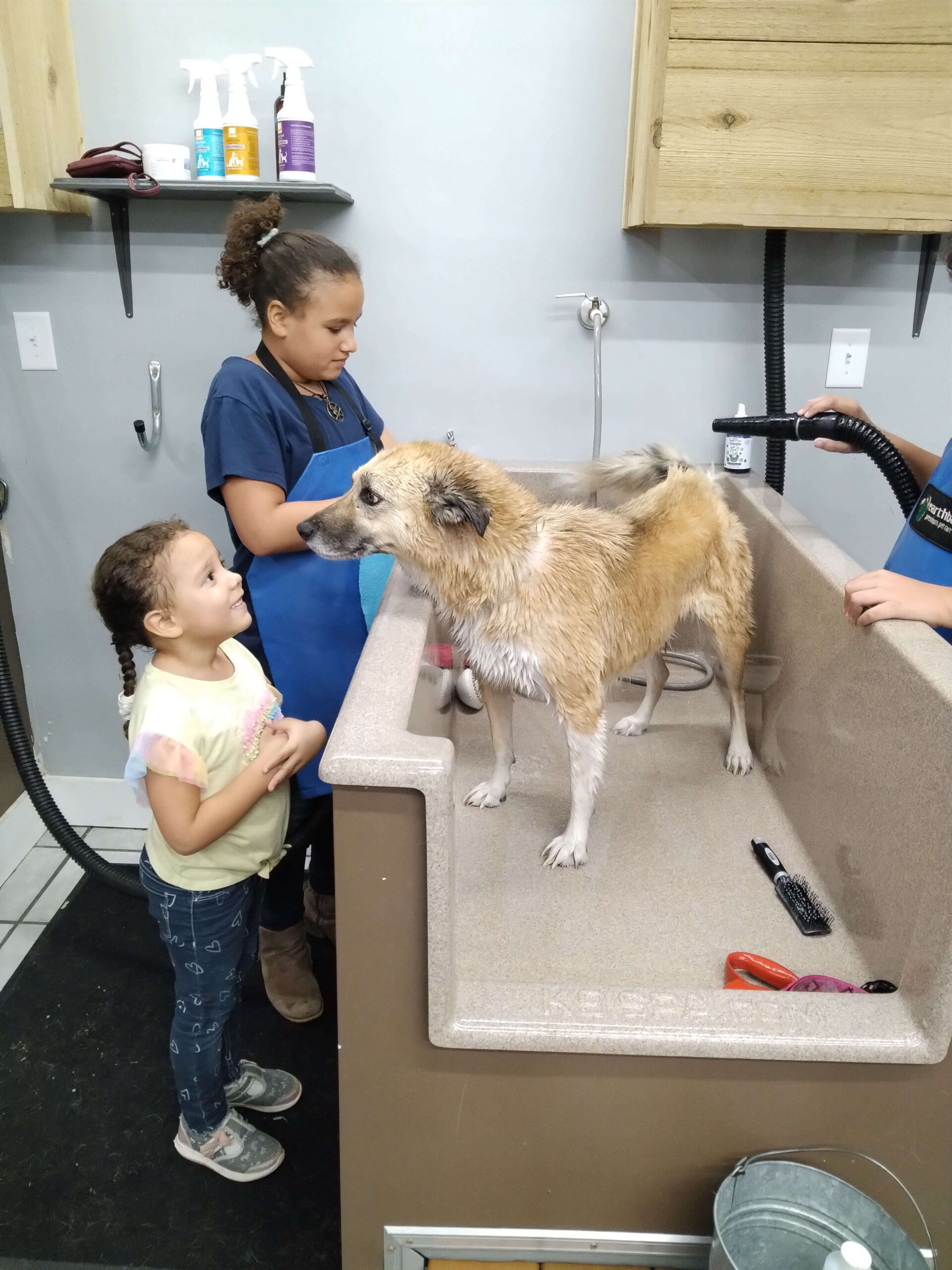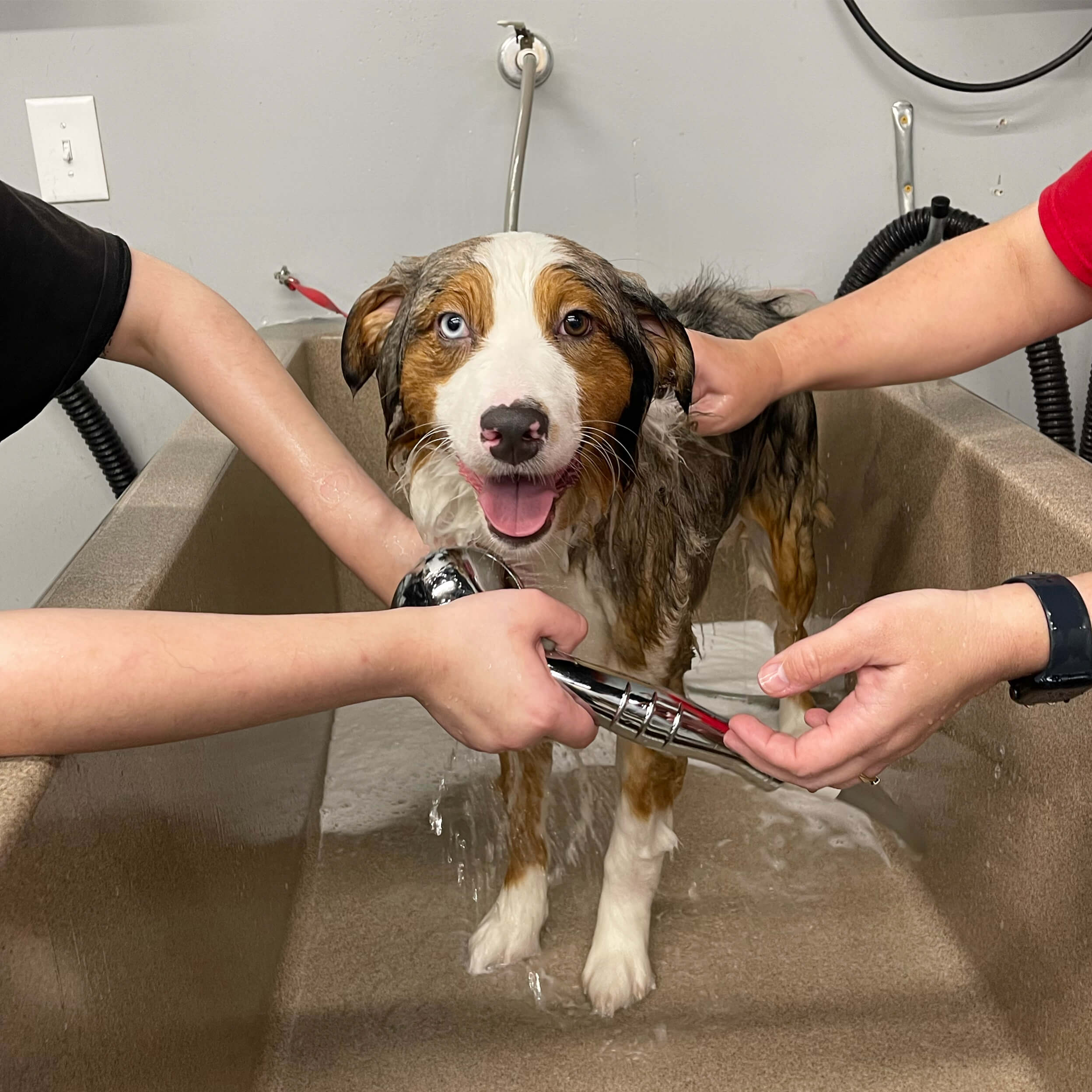 Each self-service bath includes your choice of shampoo and conditioner, along with brushes and a comb, unlimited towels and shammies, ear wipes, smell-good sprays, and fast-dry spray. Each tub is elevated, has temperature regulated water, and a high-speed, low-heat hair dryer.