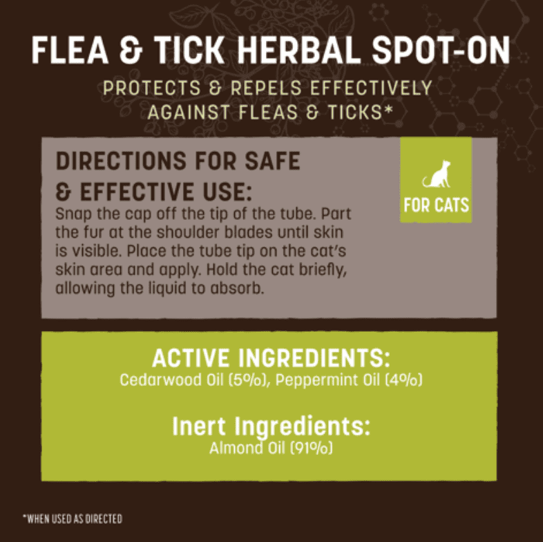 PROTECT & REPEL EFFECTIVELY AGAINST FLEAS & TICKS: A veterinary approved spot on infused with cedarwood & peppermint oils to produce a fresh, minty scent loathed by fleas & ticks