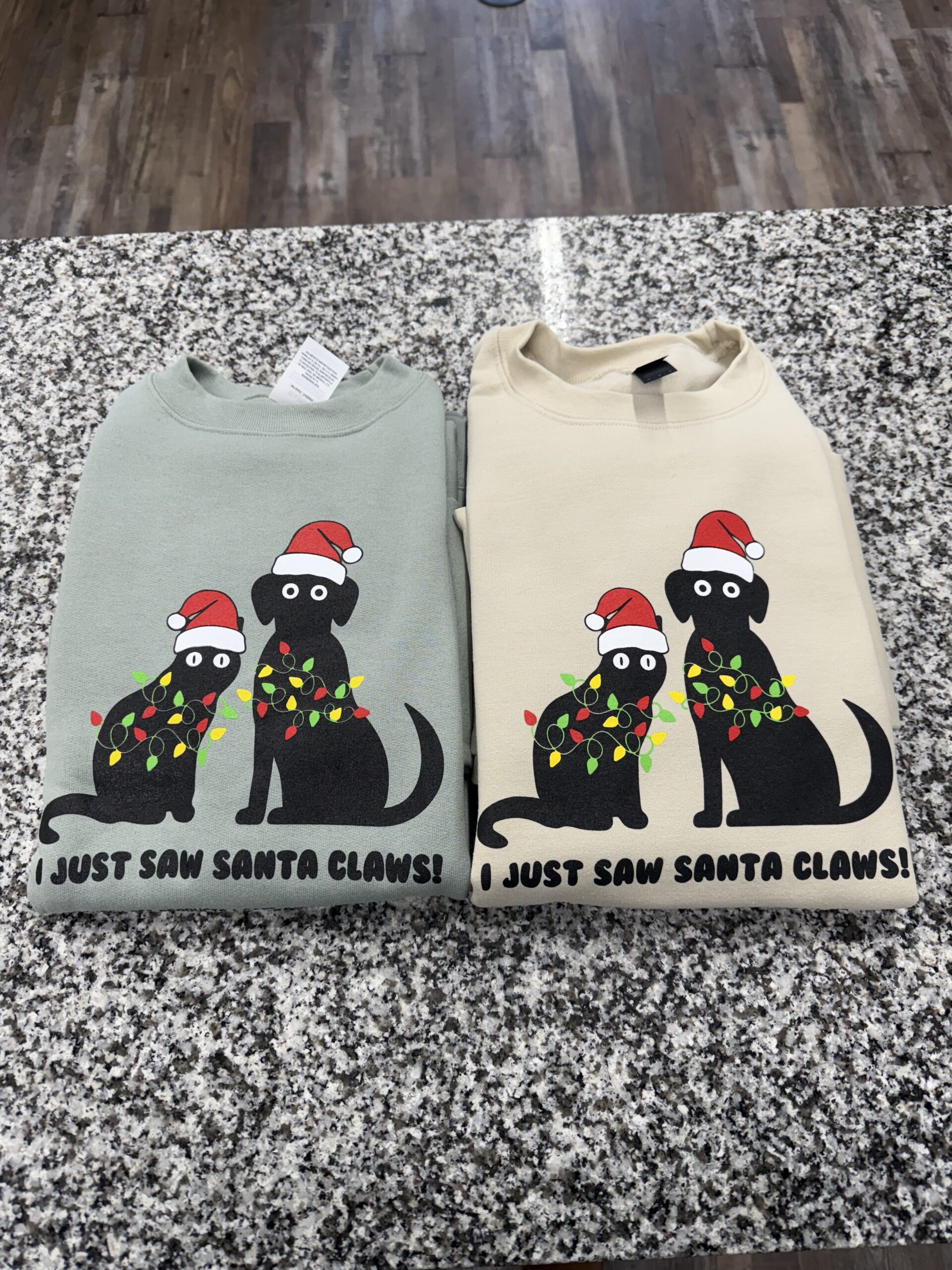 Our 2025 Christmas sweatshirt is for both the dog and cat lovers who still believe. I Saw Santa Claws!