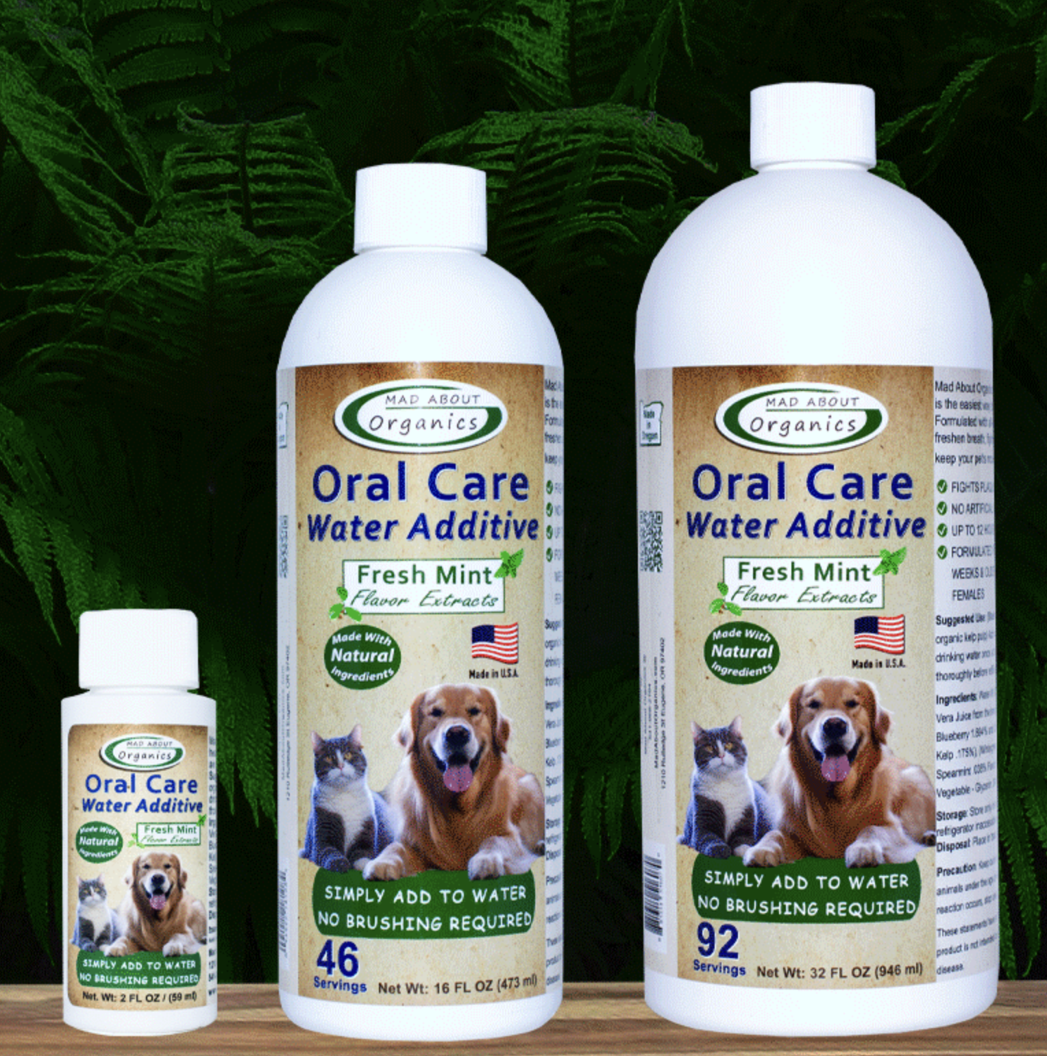 Mad About Organics offers simple, effective dental hygiene for your pet starting with our Daily Oral Care Liquid Solution – Fresh Mint with all-natural ingredients!