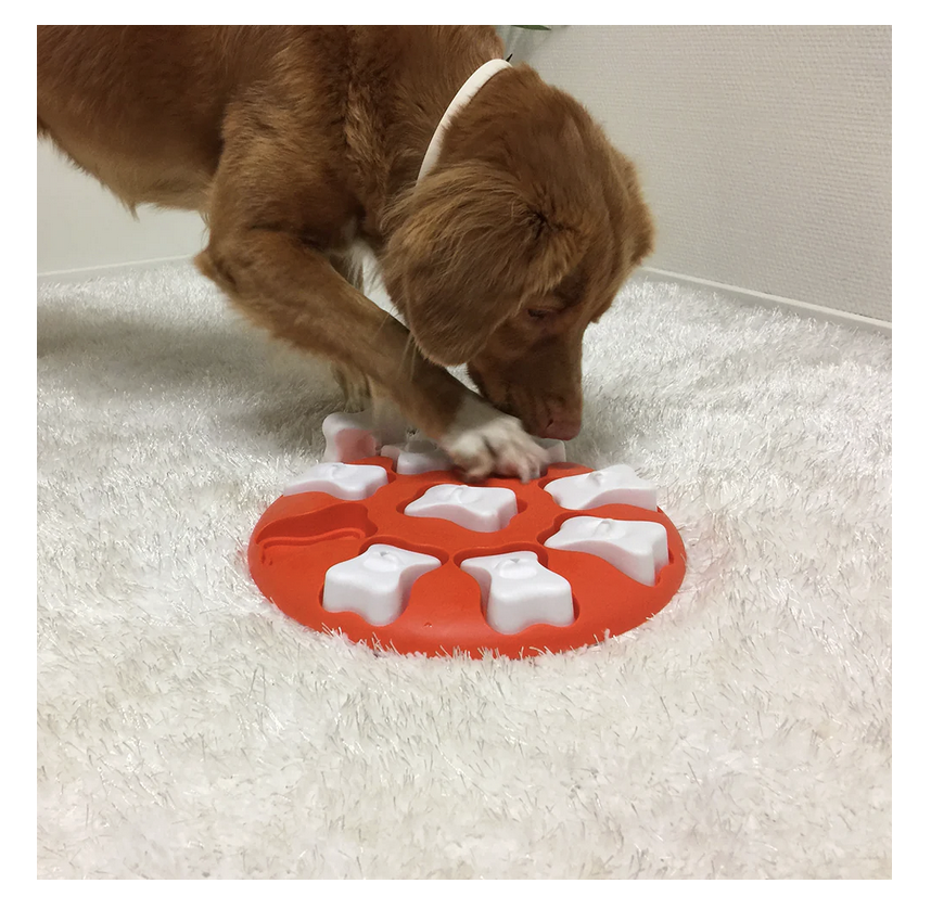 ENGAGING & MENTALLY STIMULATING: This interactive dog puzzle features 9 hidden compartments that are covered by 9 removable dog bone pieces. Hide your pup’s favorite treats in the compartments and elevate the bone for an easier grab or leave them flush with the board for increased difficulty. Watch as your dog learns to nudge and paw away the bones to reveal the reward!