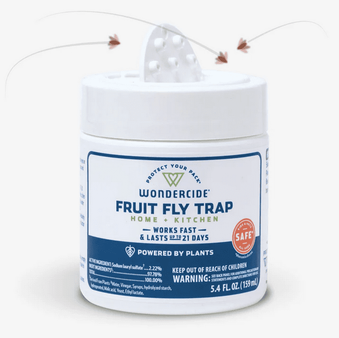 This Fruit Fly Trap is plant-powered, proven to work, and a snap to use. Targets fruit flies and is self-contained, designed to keep little paws out and the bugs inside.